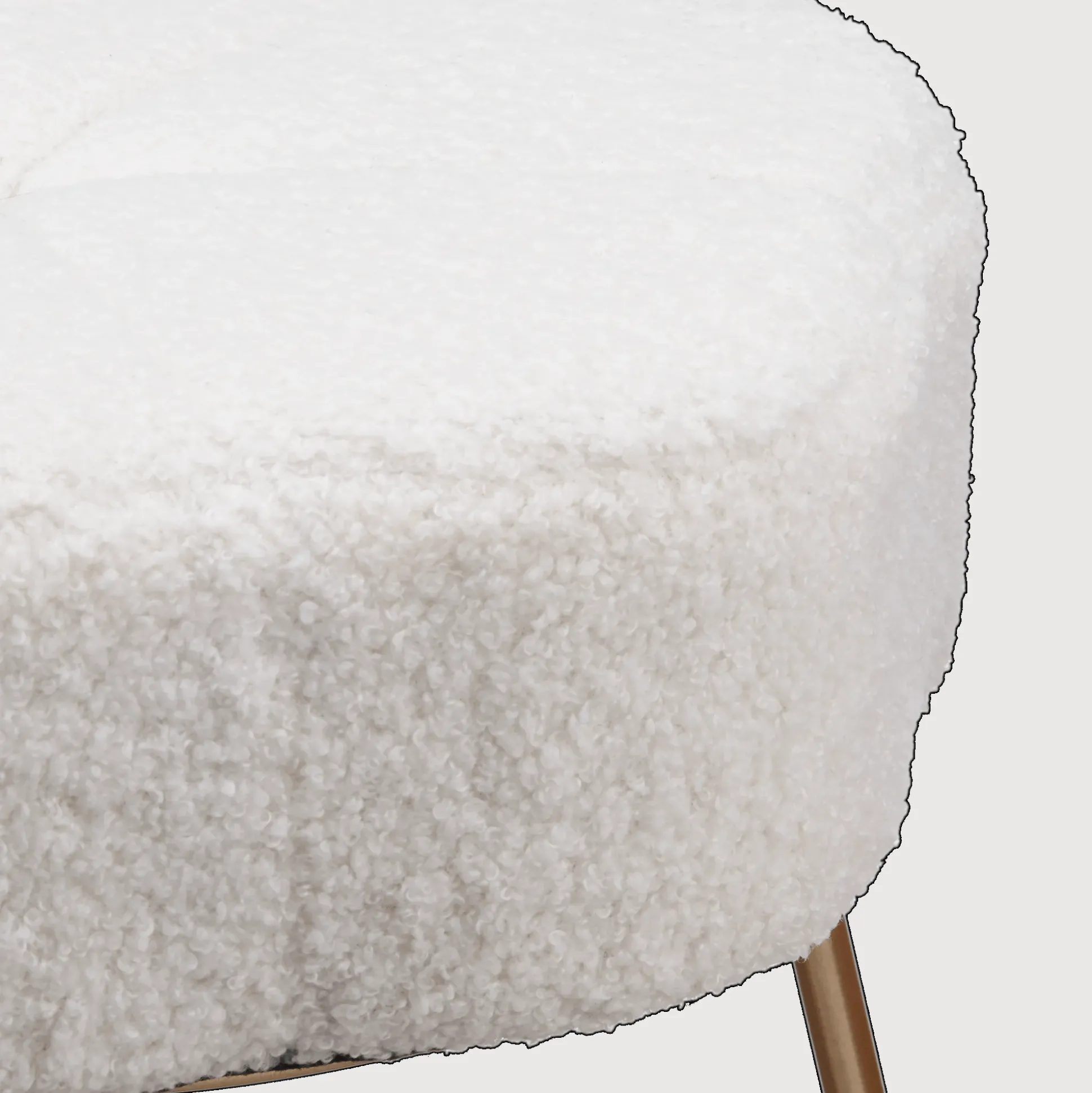 A floral-inspired bouclé seat sits atop a slim golden base. This little stool brings softness, shape, and a pop of glam, perfect for layering into any space.