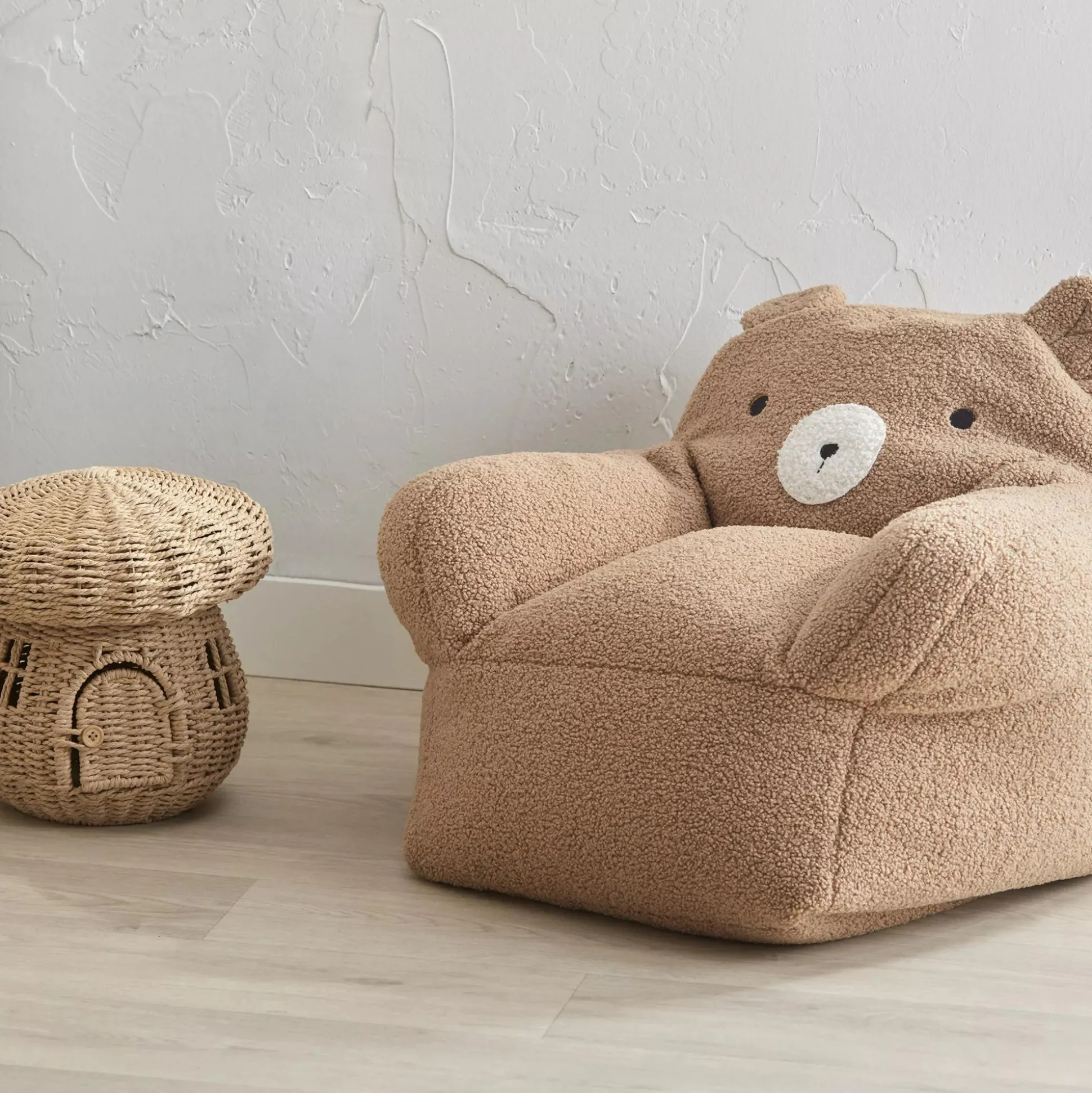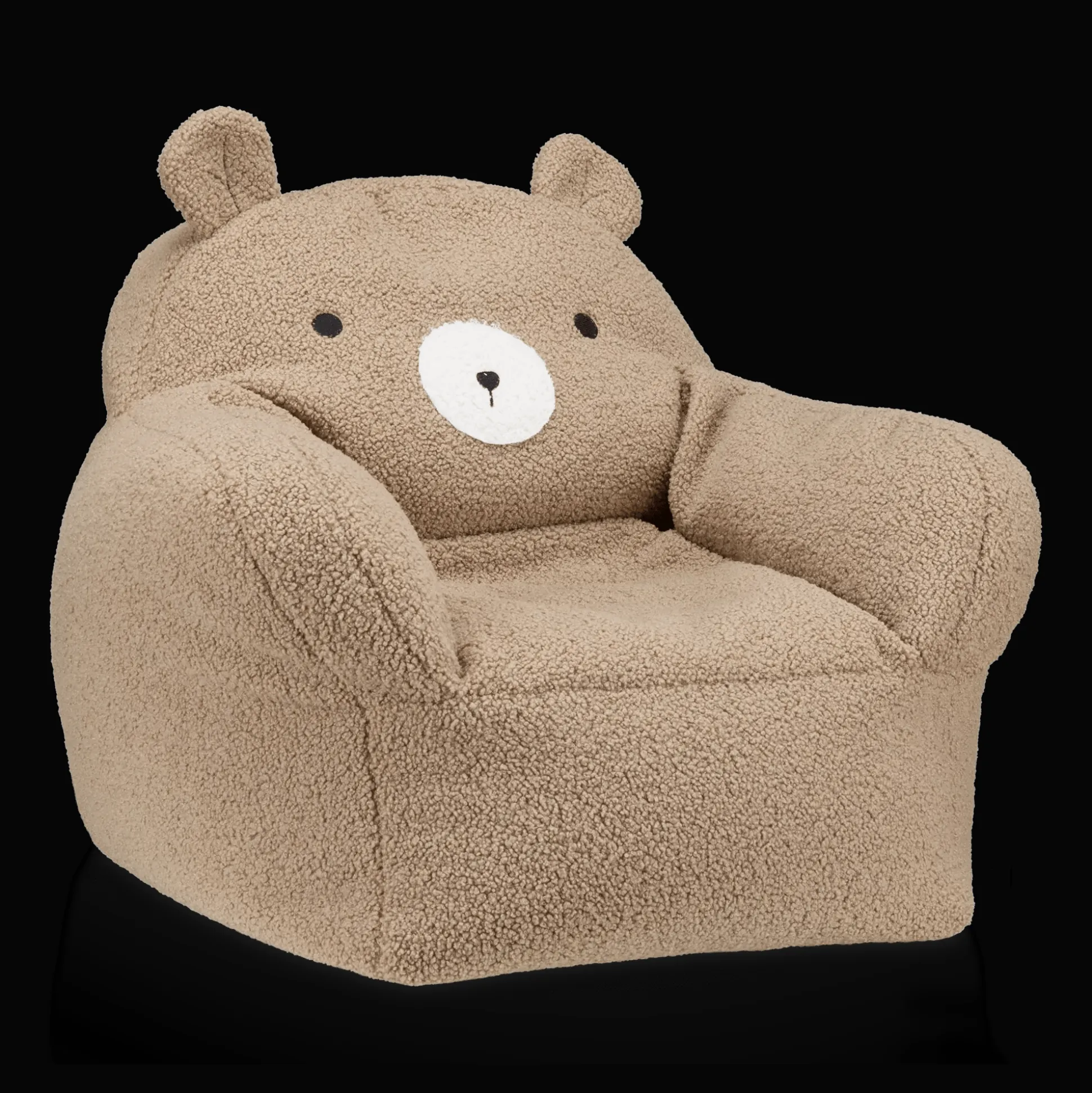 Our sherpa bear chair is covered in plush teddy bear fabric and features the teddy’s gentle face and adorable ears for a cuddly seat for reading and relaxing. With its superior-quality material and lightweight design this kid’s bean-bag-style chair offers a cozy softness and warmth that kids will appreciate.