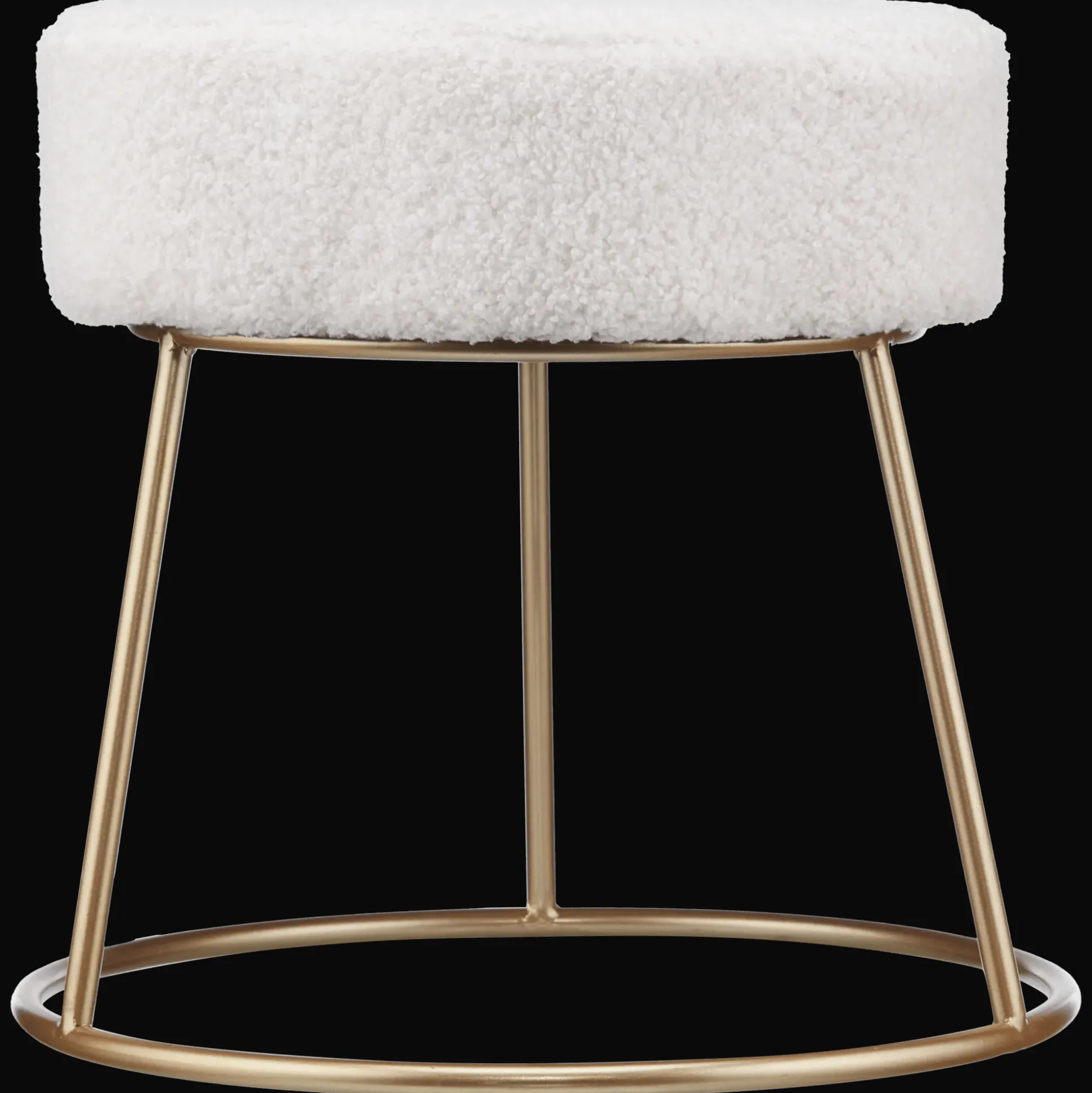 A floral-inspired bouclé seat sits atop a slim golden base. This little stool brings softness, shape, and a pop of glam, perfect for layering into any space.