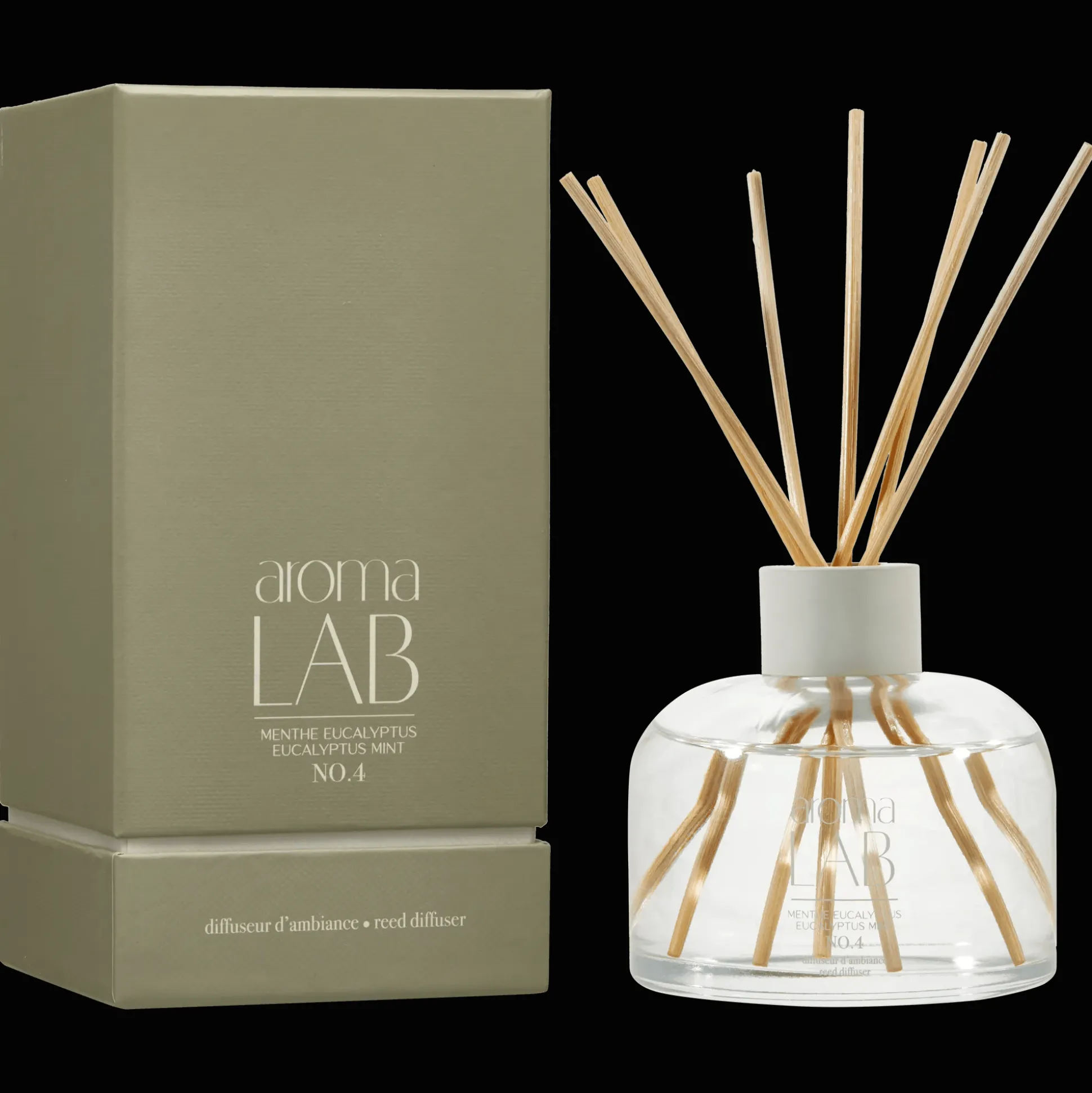Breathe in the freshness of the Eucalyptus Mint Diffuser from the Aroma Lab collection. Its invigorating notes of eucalyptus and mint create a soothing and purifying atmosphere, perfect for relaxation and mental clarity. This 200 ml diffuser lasts for 16-18 weeks, providing a unique moment of well-being.
