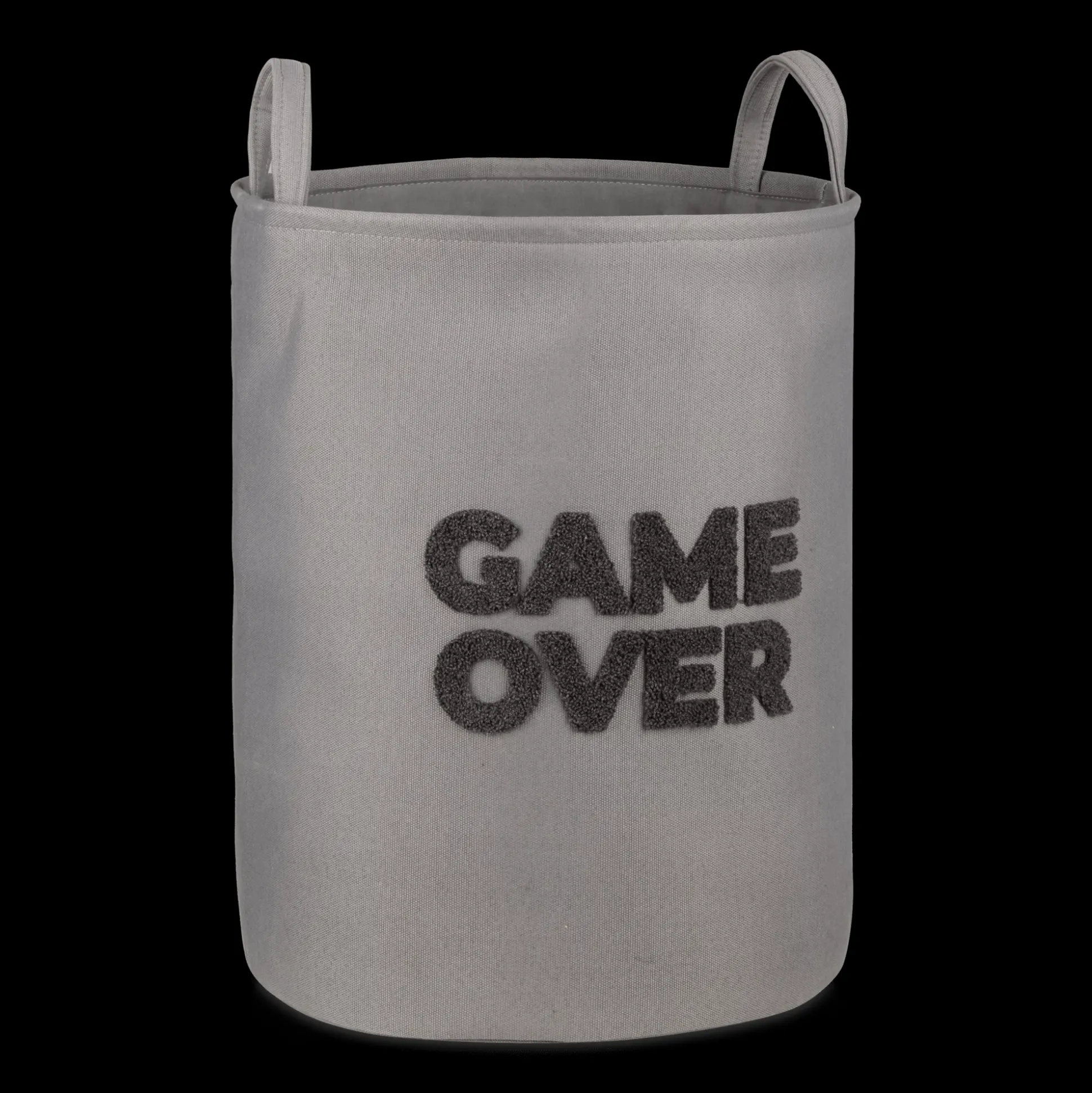 The GAME OVER Hamper is the perfect solution for keeping your kids’ dirty clothes organized and off the floor! This Gray fabric hamper features two practical handles for easy carrying and transport. The GAME OVER design embroidered in Gray sherpa fabric adds a fun and stylish touch. The ample size of this hamper makes it perfect for storing all of your kids’ dirty clothes in one convenient location. So say goodbye to cluttered floors and hello to an easy organization with the GAME OVER Hamper!
