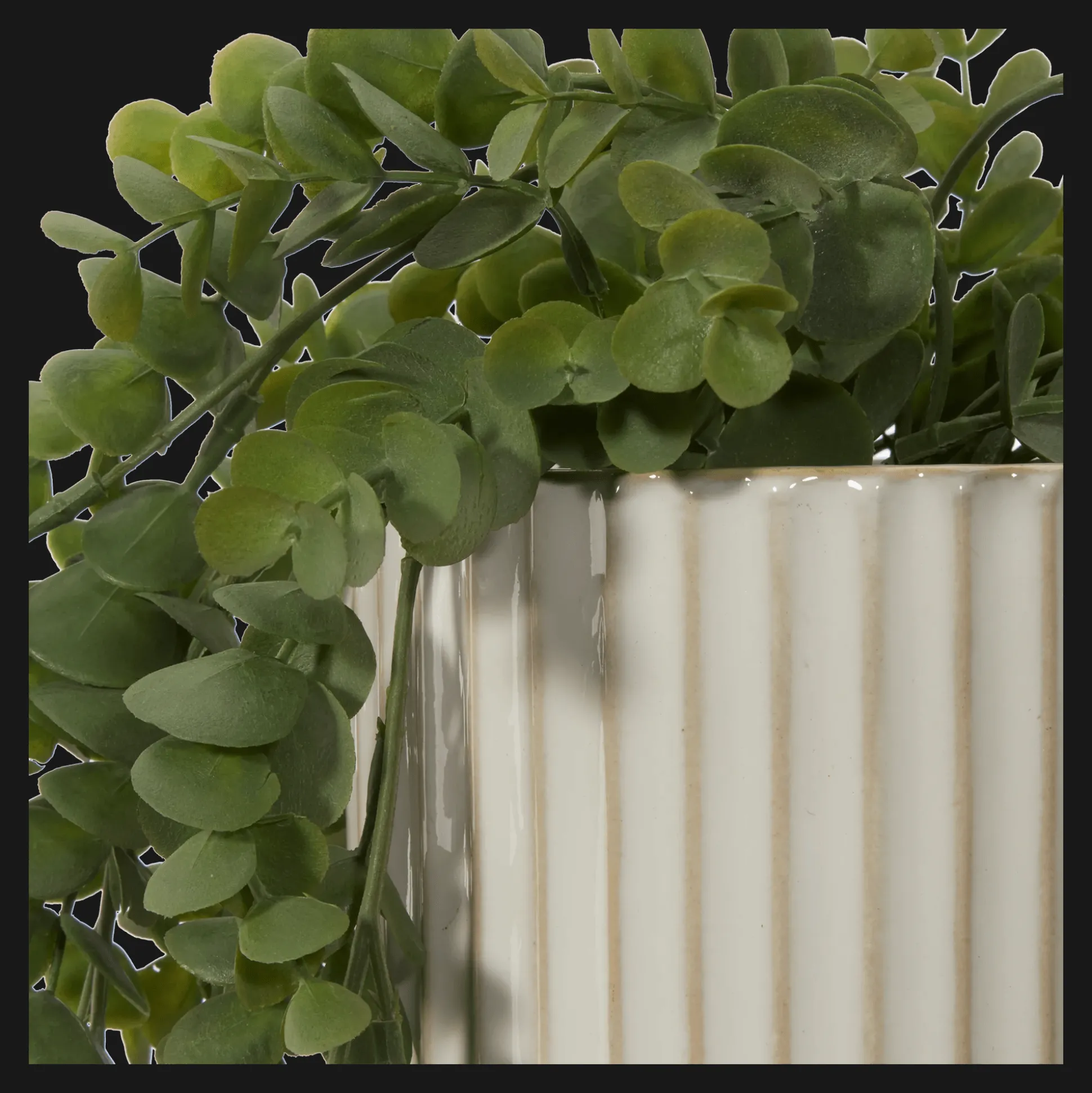 Elevate your space with the charming Long Eucalyptus in Ceramic Ribbed Pot. Crafted from durable ceramic, this stylish pot features a contemporary ribbed design that beautifully complements the lush, cascading eucalyptus. Nestled in a blend of materials, including Styrofoam and sand for stability, this arrangement brings a touch of nature indoors without the upkeep. Perfect for any room, it adds a refreshing vibe, making it an ideal choice for plant lovers and decor enthusiasts alike. Transform your home into a serene oasis with this stunning piece!