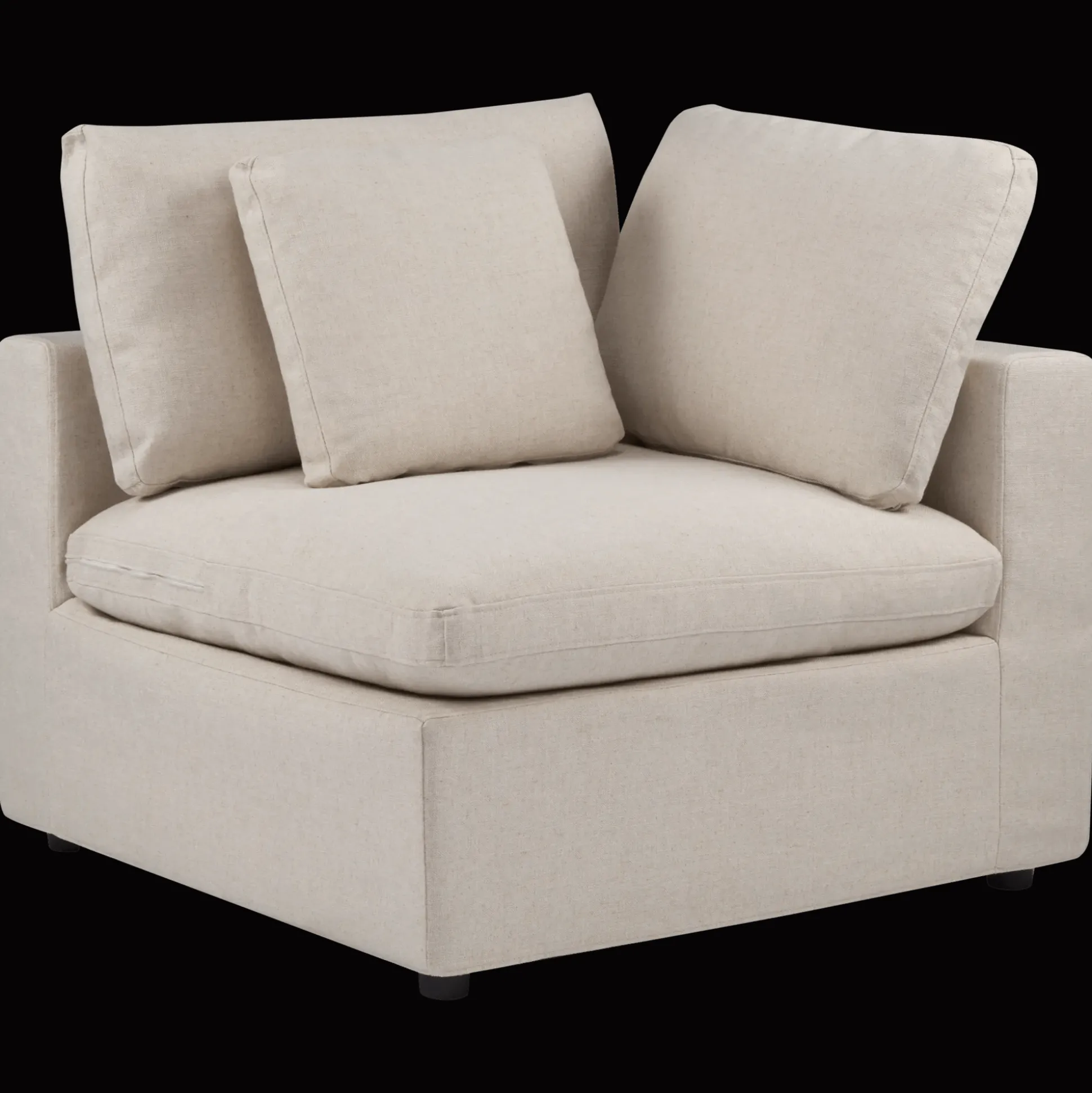 Start here. This plush right-arm seat sets the tone-soft, sculptural, endlessly modular. Build your perfect sofa, one cozy piece at a time.