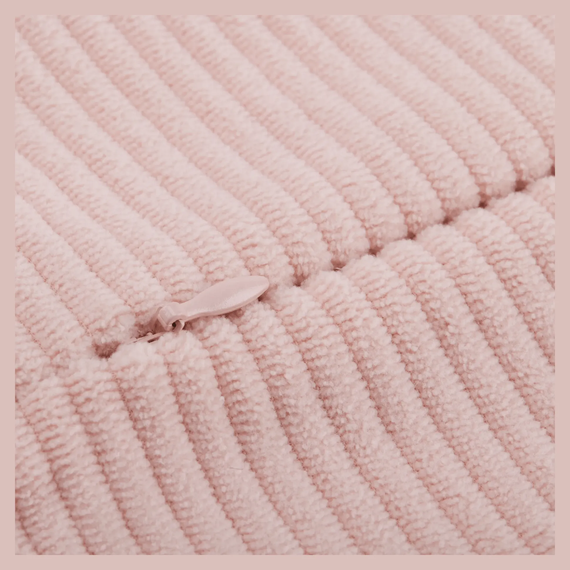 The Sayuri decorative pillow features a soft, textured corduroy pattern with vertical ribs, adding a cozy, vintage touch. In a delicate pink tone, it brings an elegant and warm vibe to any space. Perfect for sofas or beds, it combines comfort and style.