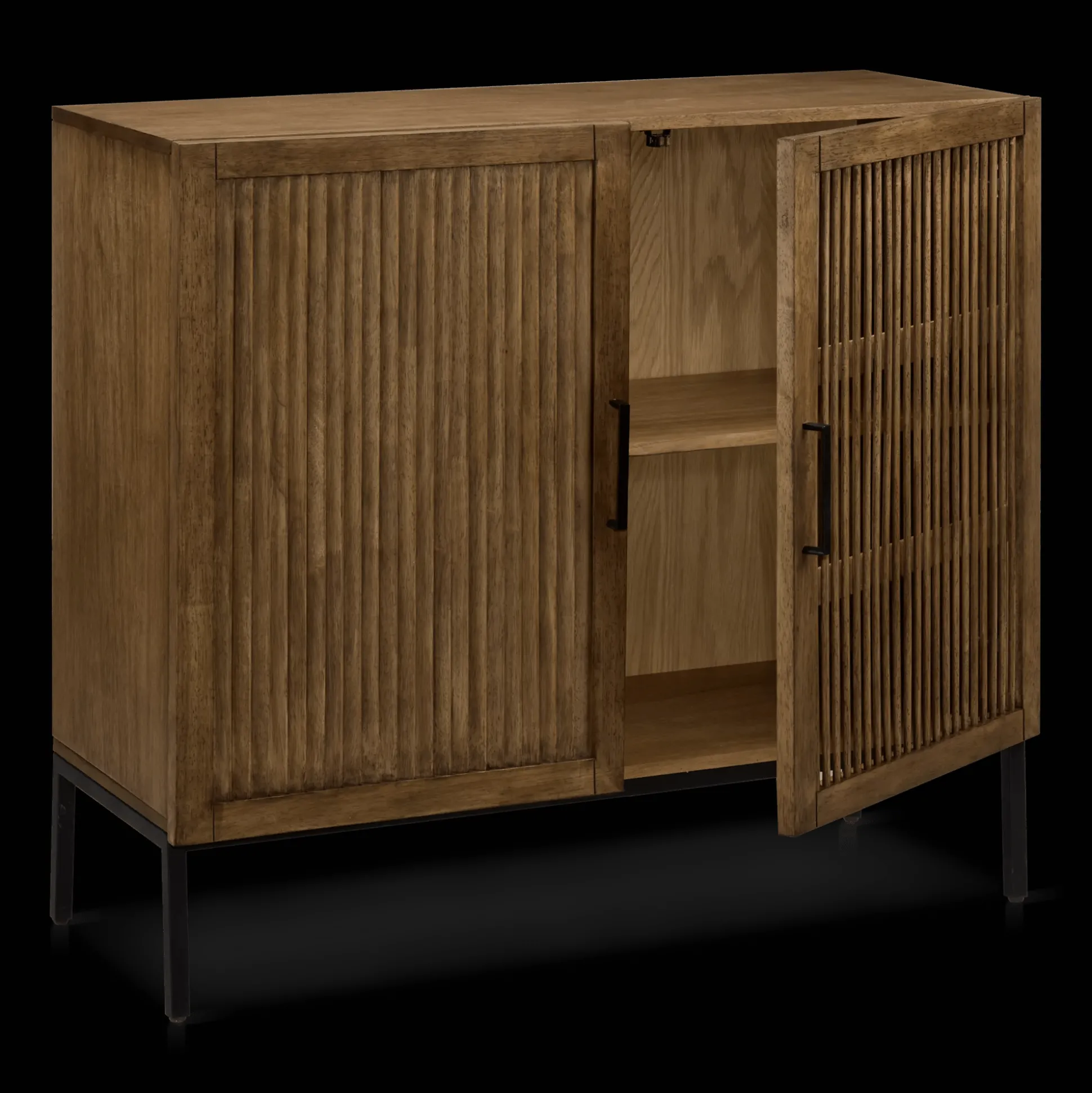 Let the warm breeze into your space with this stunning dark wood buffet. Its refined style is full of charm with its slatted doors in front. This sideboard offers a great amount of storage space for dinnerware or other dining essentials. Display pretty decorative items on top to add to the homey feel even more – add wicker baskets vases candles or whatever your heart desires.