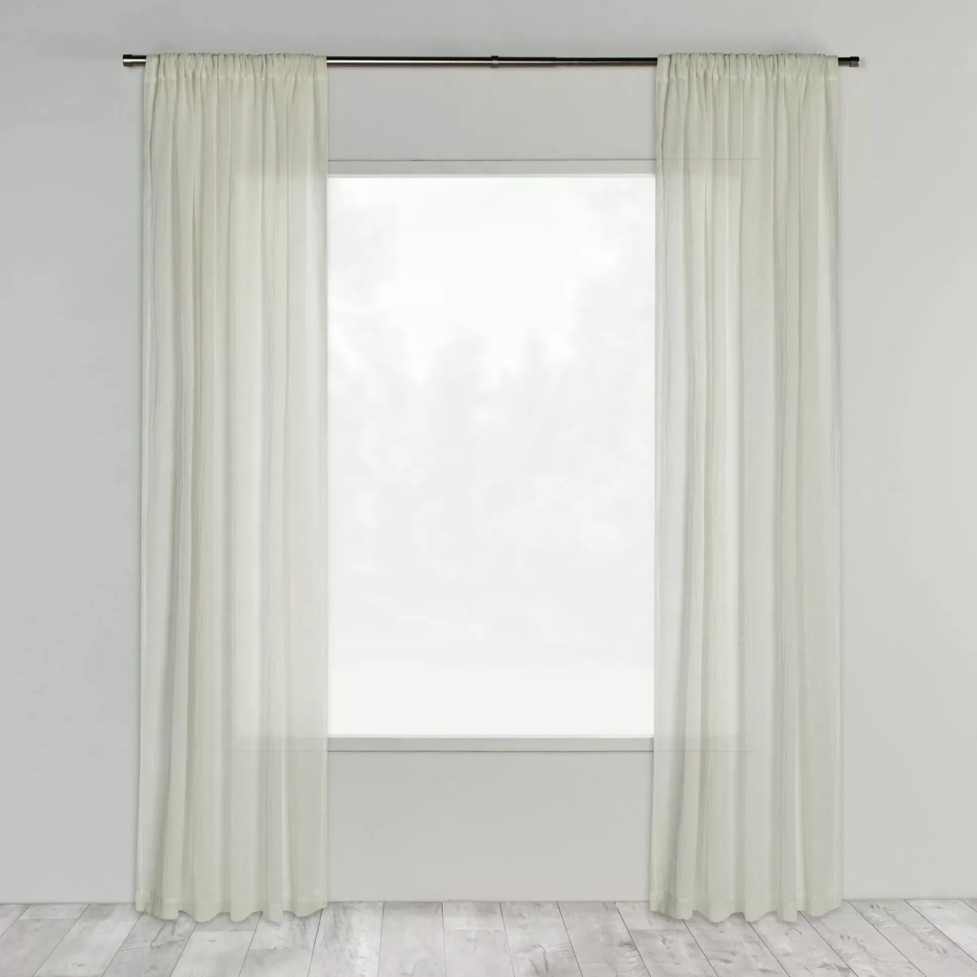 Get top marks for privacy and light with this contemporary sheer curtain. Featuring a wavy white on white woven effect, this panel will add tonal pattern without making your decor too busy. This window treatment works great with the rod of your choice. Measuring 84 inches long, its standard length suits most windows. Each panel is sold separately.